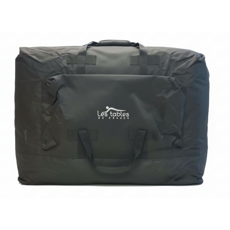 Très efficace : Cette housse est équipée d’un intérieur en PVC pour la rendre étanche, des bretelles rembourrées et des sangles renforcées, comme elle possédé aussi une poignée de transport et une bandoulière, si vous voulez la porter autrement, ainsi qu’une une grande pochette latérale pour ranger vos accessoires (linge, coussins, huiles...), très utile lors de vos déplacements à domicile ! enfin un fond renforcé avec des matériaux durable et imperméable