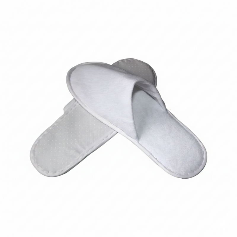 Chaussons en tissu éponge fermé pour mettre aux pieds de vos clients