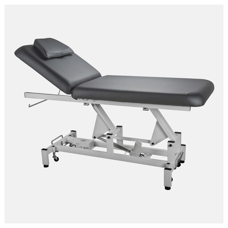 La table 2 plan SEEM est spécialement conçue pour les traitements de kinésithérapie. Le moteur sert à régler la hauteur moyen d'une télécommande (mais une pédale peut également être ajouté en option), et le dossier se relève grâce à un vérin à gaz. Pour pouvoir la déplacer facilement la SEEM est également équipée de roulettes escamotables. Coussin repose tête et porte rouleau inclus!