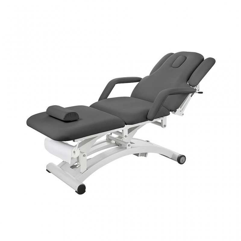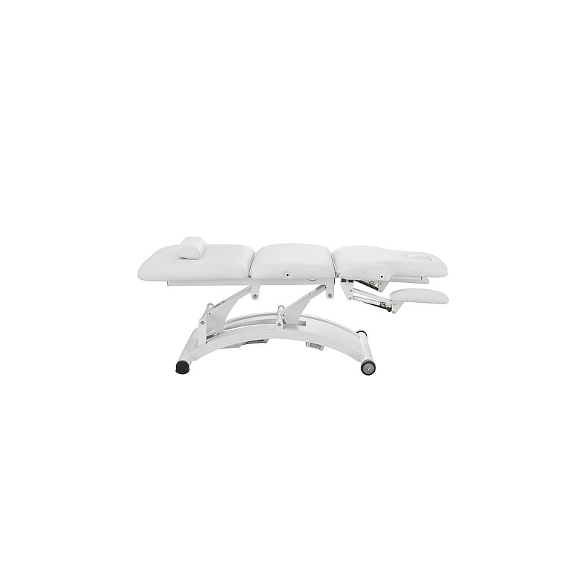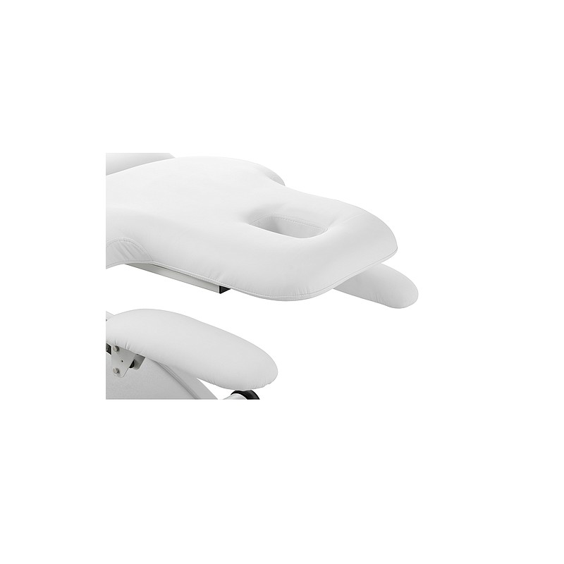 Dossier relevable avec un moteur et accoudoirs par vérin à gaz. Dossier avec cavité visage et un coussin nuque