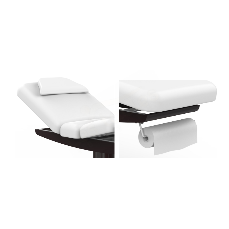 Confort client & entretien : PU blanc, trou visage + coussin amovible.