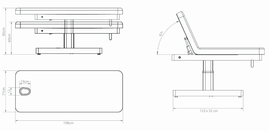 Productivité : 2 moteurs indépendants (hauteur, dossier) → réglages fluides et rapides pour un positionnement précis selon chaque soin.