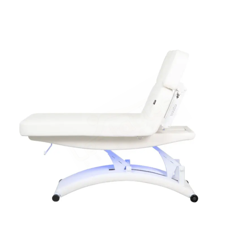 Son matelas d'une épaisseur de 12 cm, recouvert de PU beige de haute qualité, assure un accueil doux et agréable, tout en étant facile à nettoyer. La table est dotée de 3 sections, offrant une grande souplesse d'utilisation pour différents types de soins, et dispose d'un système de chauffage intégré pour offrir à vos clients une sensation de chaleur réconfortante pendant leurs traitements. De plus, son appui-tête avec trou facial permet de garantir le confort du patient lors de séances de soins allongés.