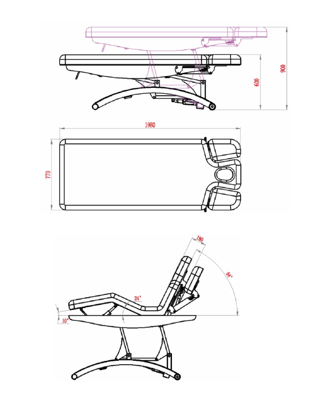 Moteurs : 3 moteurs électriques pour réglage de la hauteur, du dossier et du repose-pieds