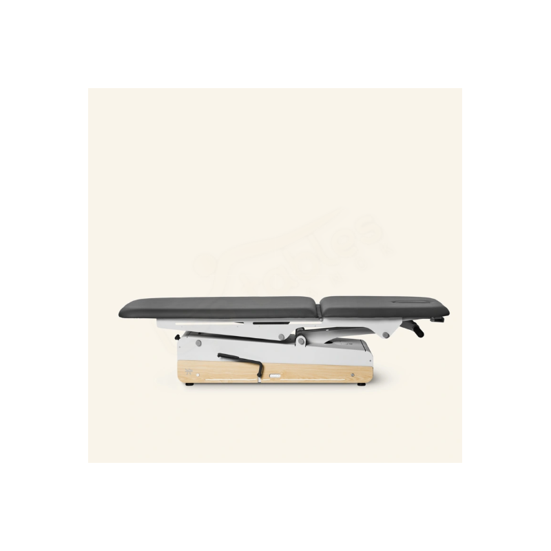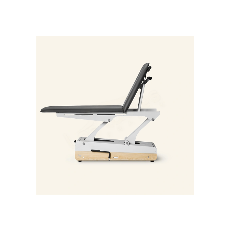 Sa têtière longue avec deux vérins à gaz assure un positionnement précis pour les soins de rééducation et de thérapie manuelle.