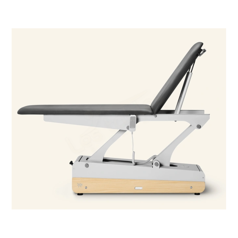 100% électrique : Ce système électrique permet d'ajuster la hauteur de manière pratique et précise en utilisant simplement la télécommande manuelle. Le moteur électrique se charge des ajustements nécessaires pour élever ou abaisser automatiquement la table en hauteur, éliminant ainsi le besoin d'effort physique de la part du professionnel.