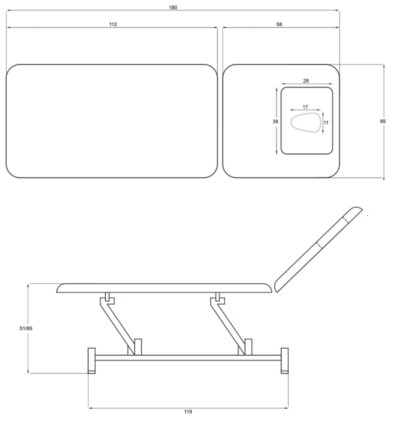 Réglage électrique de la hauteur, dossier inclinable et détails pensés pour le bien-être du patient et le confort du professionnel.